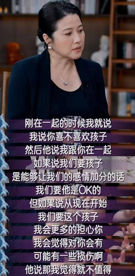 他说:“我跟你在一起,如果说我们要孩子,能够让我们的感情加分,那是OK的。但如果要孩子这件事会影响到你,会对你的身体可能有一些损伤的话,那我觉得就不值得。”