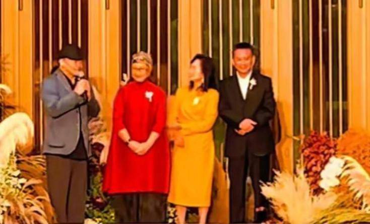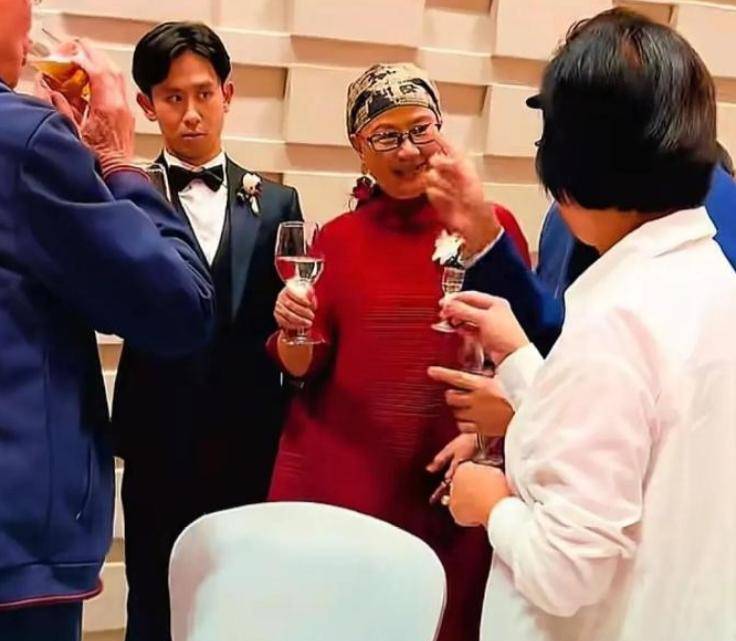 刘欢夫妇全程陪伴在侧。62岁的刘欢戴着深色帽子,两鬓斑白,在将女儿交托给新郎时眼眶湿润,紧紧握着女婿的手低声叮嘱。身着红裙的卢璐笑容灿烂,与亲家相谈甚欢,对女婿赞不绝口。